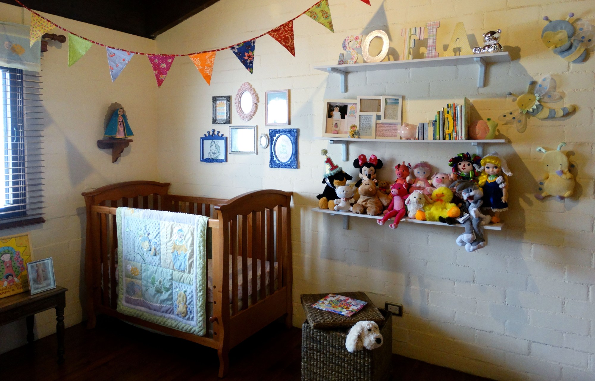 Creo que uno de mis lugares favoritos es el cuarto de mi bebe, me encanta porque está lleno de adornos hechos para ella con tanto amor y claro, también por ese delicioso olor a bebe. Es el rinconcito del mundo de mi pequeña donde duerme, crece, sueña y juega. Un espacio donde las reglas de la decoración salen por la ventana, porque aquí se vale la saturación, llenar de objetos coloridos que estimulen sus sentidos, que le den seguridad y sentido de pertenencia.